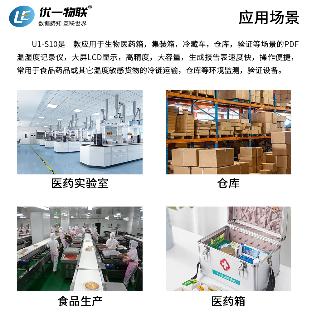 U1-S10是一款應(yīng)用于生物醫(yī)藥箱,集裝箱,冷藏車,倉庫,驗(yàn)證等場景的PDF溫濕度記錄儀,大屏LCD顯示,高精度,大容量,生成報(bào)告表速度快,操作便捷,常用于食品藥品或其它溫度敏感貨物的冷鏈運(yùn)輸,倉庫等環(huán)境監(jiān)測(cè),驗(yàn)證設(shè)備。