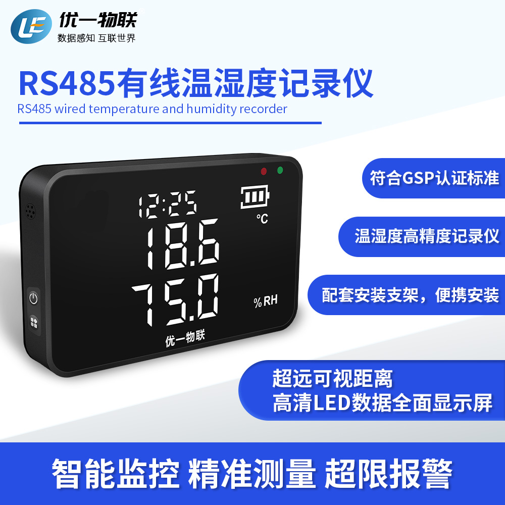 S200R RS485產(chǎn)品系列是一款安裝在固定場(chǎng)所的有線溫濕度記錄儀,高清全屏LED顯示,可視距離遠(yuǎn),高精度,大存儲(chǔ)容量,配套支架安裝。 廣泛應(yīng)用于農(nóng)業(yè)、食品、醫(yī)藥、化工、電子、實(shí)驗(yàn)室等在線監(jiān)測(cè)系統(tǒng)中,該記錄儀采用瑞士原裝進(jìn)口一體式傳感器,內(nèi)置充電鋰電池,支持外電供電充電,超低功耗,且都支持外置可調(diào)聲光報(bào)警器。
