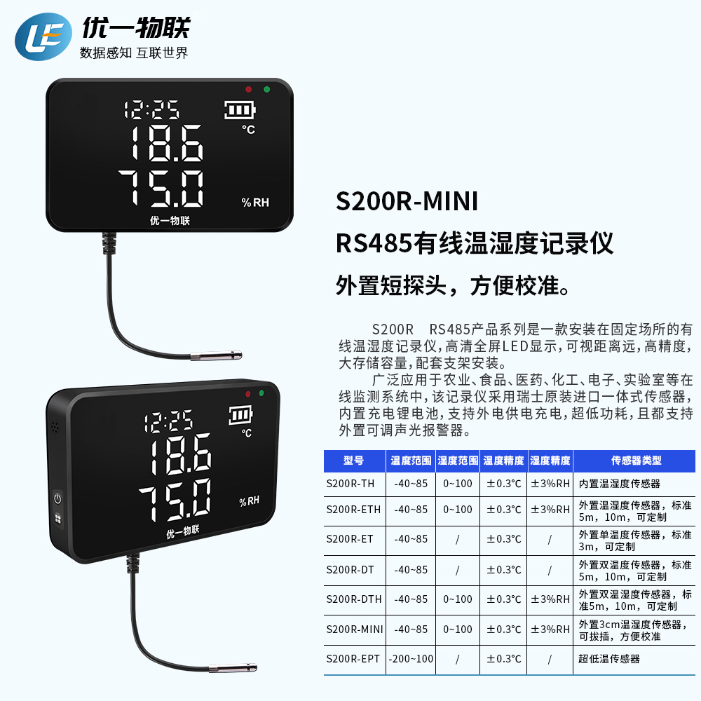 S200R-MINI RS485有線短探頭溫濕度記錄儀